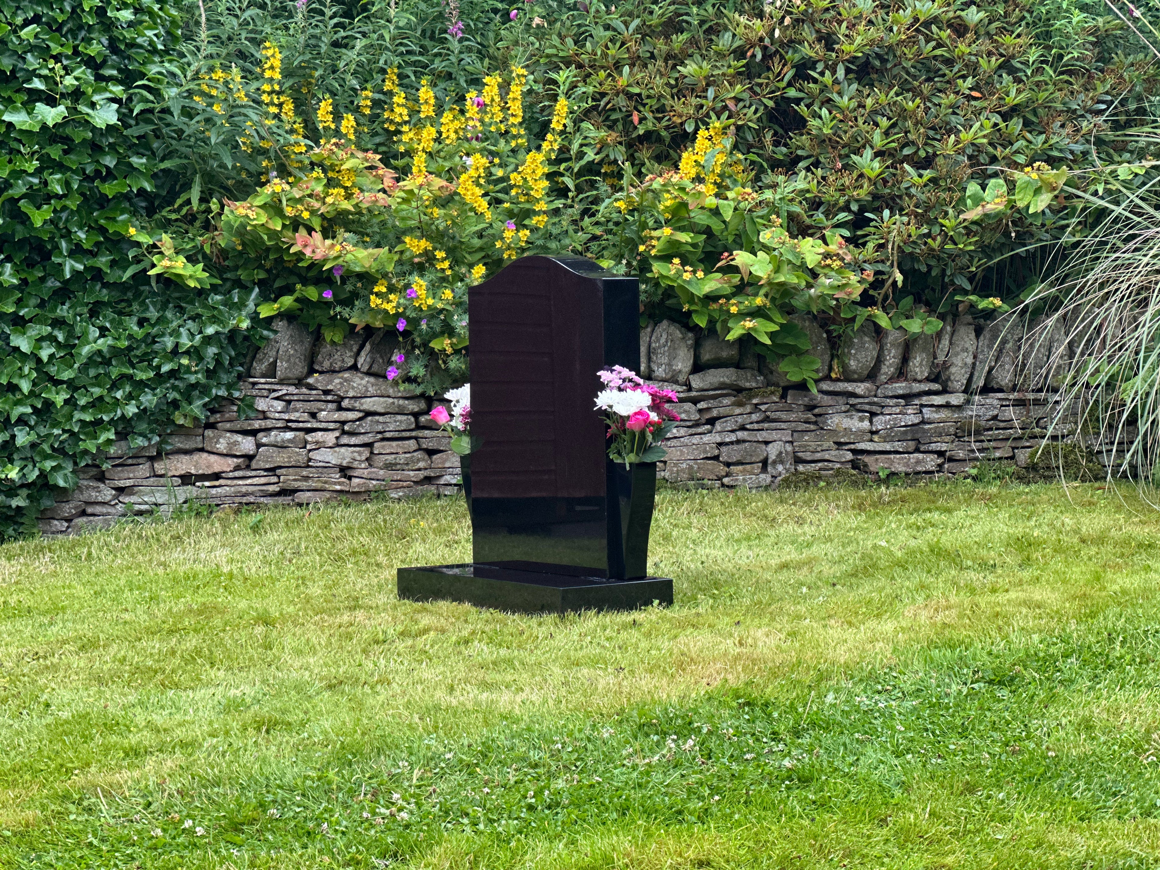 Designed by monumental masons to seamlessly blend with the stone while adding extra practicality compared to traditional headstone base flower vases. Our taller, elegantly designed vases can be added onto new or older stones and offer greater capacity for larger flower arrangements. Made from durable, weather-resistant materials, they securely attach to the side of any smooth-sided headstone, are easily removable, and won't cover any of the lettering on the stone. Fitting only takes a few minutes and requires no special tools. Our Side Vases combine practicality and elegance to beautifully honour your loved ones.